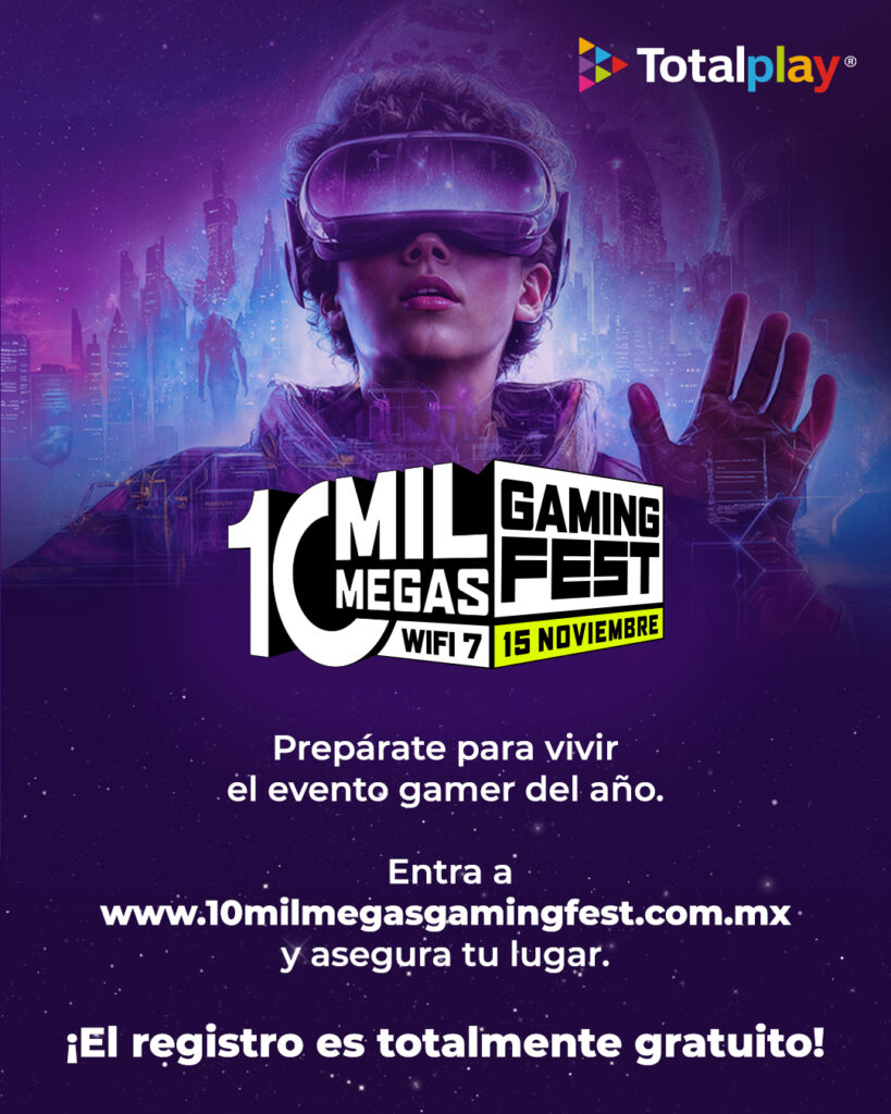 Totalplay invita a todos los fanáticos de los videojuegos a prepararse para sacar su mejor cosplay y vivir un día épico lleno de experiencias interactivas, competencias y emociones en un ambiente diseñado para romper los límites entre lo real y lo virtual. El 10 Mil Megas Gaming Fest será una celebración masiva del gaming en todas sus formas: torneos de eSports, simuladores de realidad virtual, zonas de juego libre, concursos de cosplay y muchas sorpresas que encenderán el entusiasmo de una generación que juega, crea y comparte sin barreras.