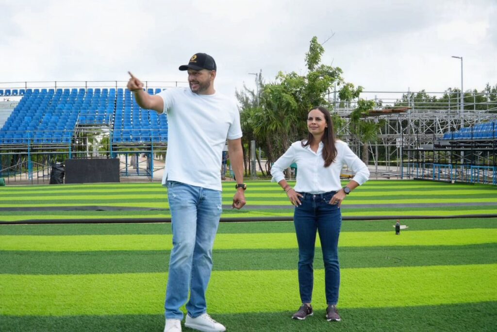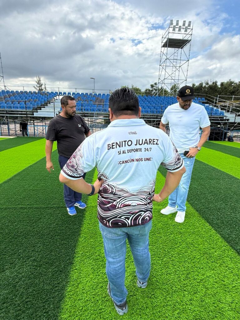 Cancún dio este miércoles 19 de noviembre un nuevo paso rumbo al TUI Socca World Championship 2025, al recibir la visita de la presidenta municipal Ana Paty Peralta, acompañada por el director general del Instituto del Deporte, Alejandro Luna López, para constatar el notable avance en la construcción del estadio en Malecón Tajamar. Durante el recorrido verificaron la colocación del césped artificial y la calidad de la superficie que soportará los partidos entre las 32 selecciones participantes del 28 de noviembre al 7 de diciembre.