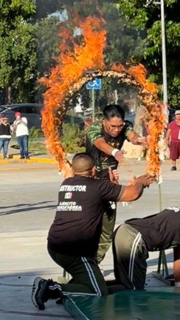 Tras el protocolo oficial, los asistentes disfrutaron de impresionantes exhibiciones que dieron vida al espíritu revolucionario. El 64° Batallón de Infantería del Ejército Mexicano abrió con una demostración marcial de precisión y gallardía; le siguieron los espectaculares movimientos coordinados de Pioneros de Cancún, el Escuadrón Deportivo Militarizado y Deportivo de Benito Juárez, Bomberos y la Policía Ciudadana, quienes sorprendieron con acrobacias, técnicas de rescate y despliegues de destreza física que encendieron el entusiasmo del público.