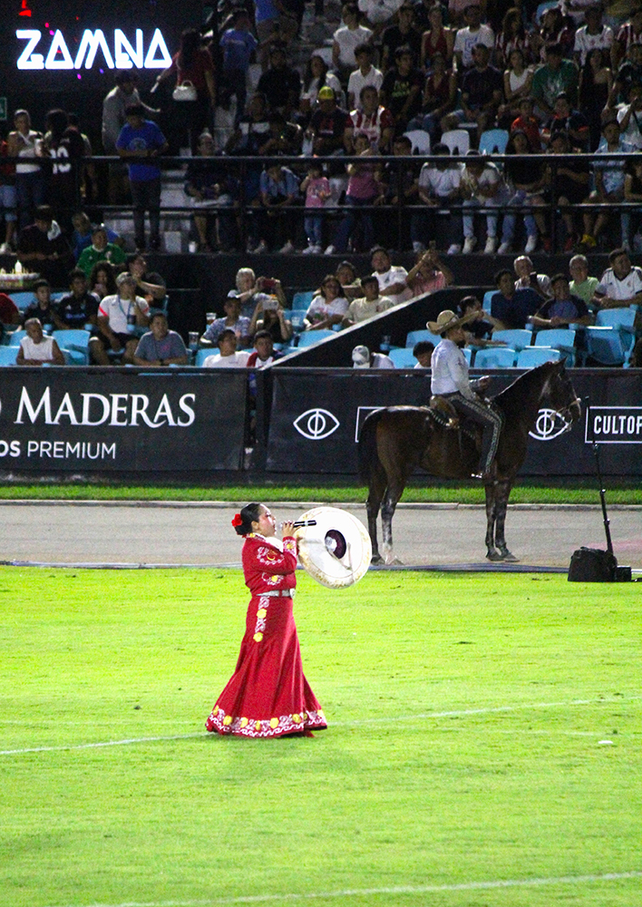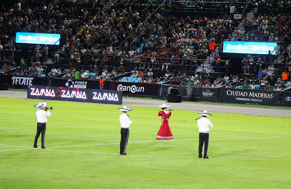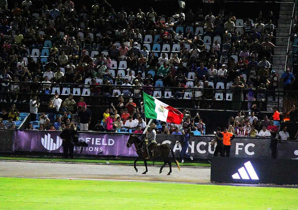 Un show de medio tiempo muy mexicano con escaramuzas y mariachi, presentó Cancún FC para deleite de los más de 6 mil 200 aficionados que acudieron al inmueble de la supermanzana 21.