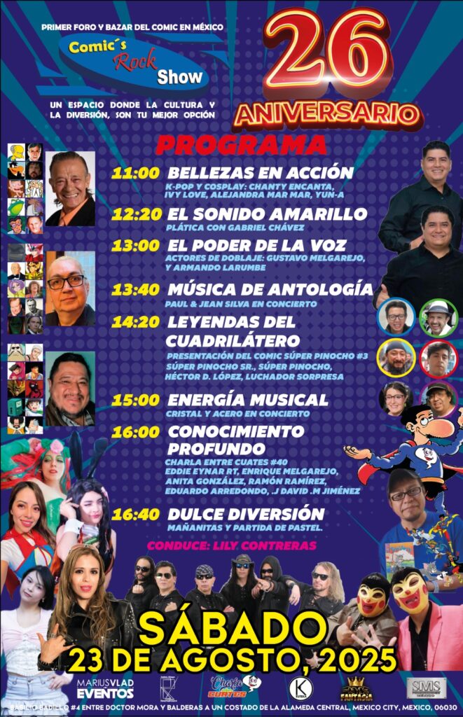 *Este aniversario se llevará a cabo en el Comics Rock Show este sábado 23 de agosto para celebrar 26 años de vida