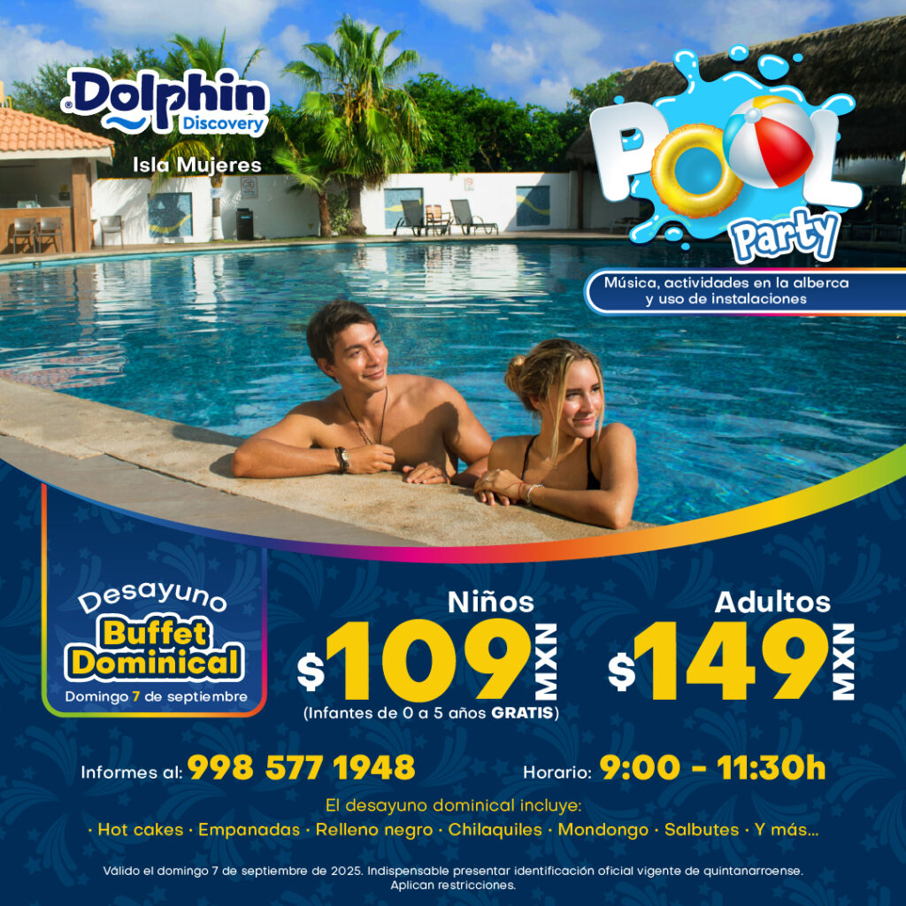 | Domingo 7 de septiembre | Pool Party con música y actividades en la alberca | Dolphin Discovery Isla Mujeres |