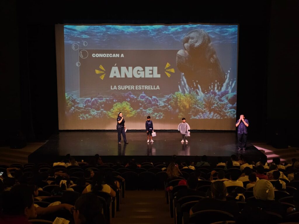 El cierre de esta serie de actividades se llevó a cabo el 28 de octubre en el Teatro de la Ciudad, donde más de 250 asistentes, entre estudiantes de primaria y secundaria de escuelas públicas y privadas, docentes, familias y aliados, participaron en una jornada llena de aprendizaje y entretenimiento que incluyó conferencias, talleres, una obra de teatro, música en vivo y juegos educativos enfocados en la protección del manatí y su hábitat. Entre los momentos más destacados, se contó con la participación de la Orquesta de la Policía de Quintana Roo, que interpretó dos temas dedicados a los niños y niñas presentes, creando un ambiente de alegría, música y conciencia ambiental.