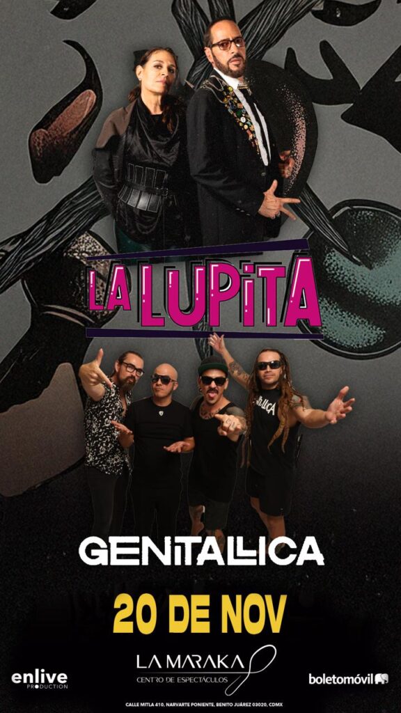 Hay noches que no se anuncian: se presienten. Este jueves 20 de noviembre de 2025, el Centro de Espectáculos La Maraka será epicentro de un estallido que unirá dos fuerzas emblemáticas del rock mexicano: La Lupita, banda legendaria que regresa con su nuevo sencillo "El Insecto", y Genitallica, los irreverentes del norte que llegan a la capital con su más reciente tema "Me gustas un chingo", un canto desenfadado al deseo, a la emoción y al puro vértigo de sentirse vivo. Será una velada de guitarras encendidas, nostalgia compartida y humor contestatario, donde el público volverá a comprobar por qué el rock mexicano sigue siendo el espejo más honesto de una generación que no se rinde. Los boletos ya están disponibles a través de Boletomóvil y en las taquillas del recinto.