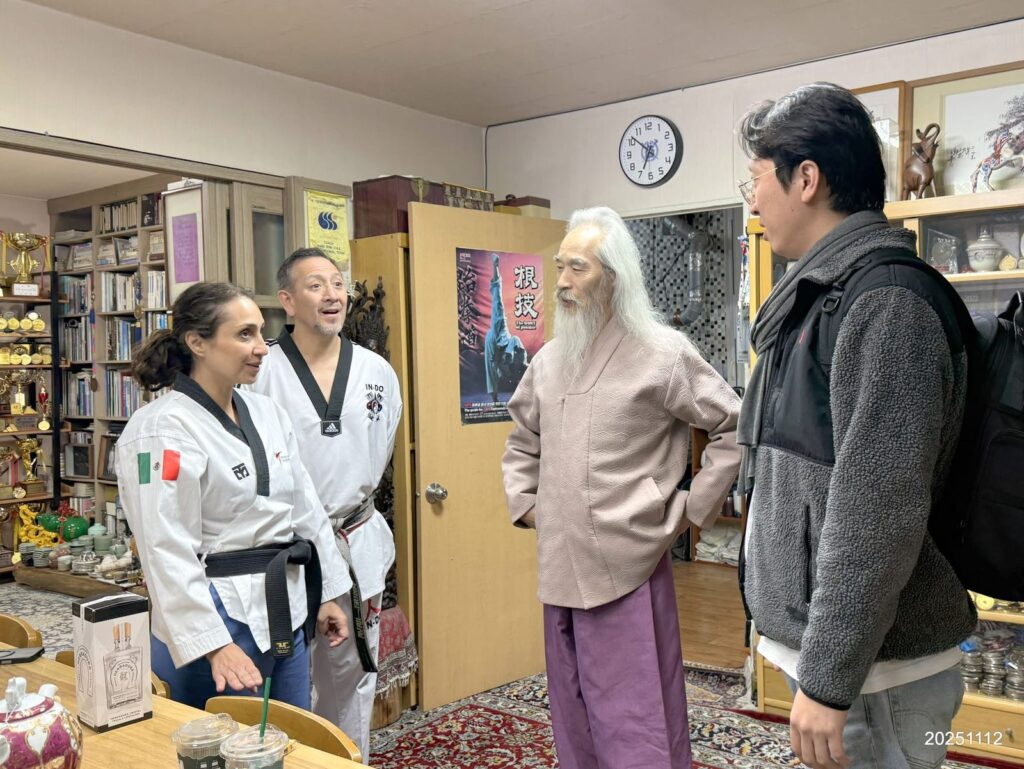Dentro de las actividades a las que asistio fue la convivencia con el maestro Kang Shin Chul, un maestro que a pesar de su edad demuestra grandes habilidades en el arte del pateo, originario de Corea del Sur, que combina poderosas patadas acrobáticas con técnicas de autodefensa. Y con una historia milenaria muy interesante.