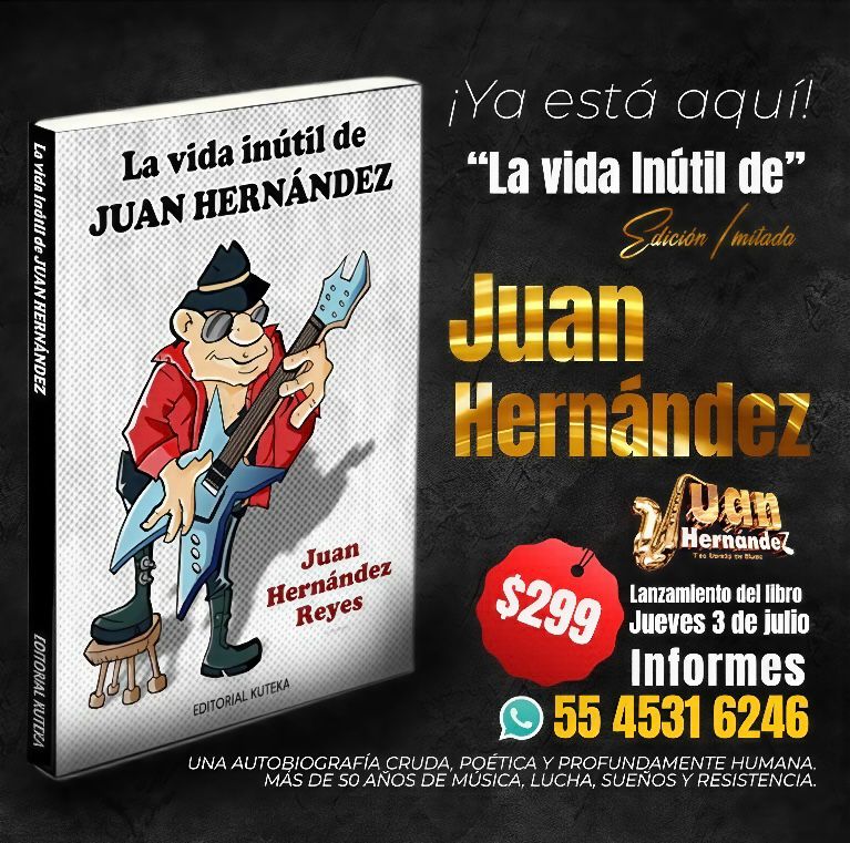 Cuando parece que el ruido de la industria amenaza con apagar las voces auténticas, Juan Hernández alza nuevamente la suya, no con acordes ni distorsiones, sino con palabras que arden y acarician al mismo tiempo. El 3 de julio, bajo el cobijo de la editorial Kuteka, se lanza La vida inútil, un libro que no es simplemente una autobiografía, sino un grito desde las entrañas, una confesión con olor a sudor, calle y escenario. Una bitácora de vida escrita con la tinta de los años, las derrotas y éxitos, los sueños, las tocadas, las noches y madrugadas compartidas con guitarras y almas en llamas.