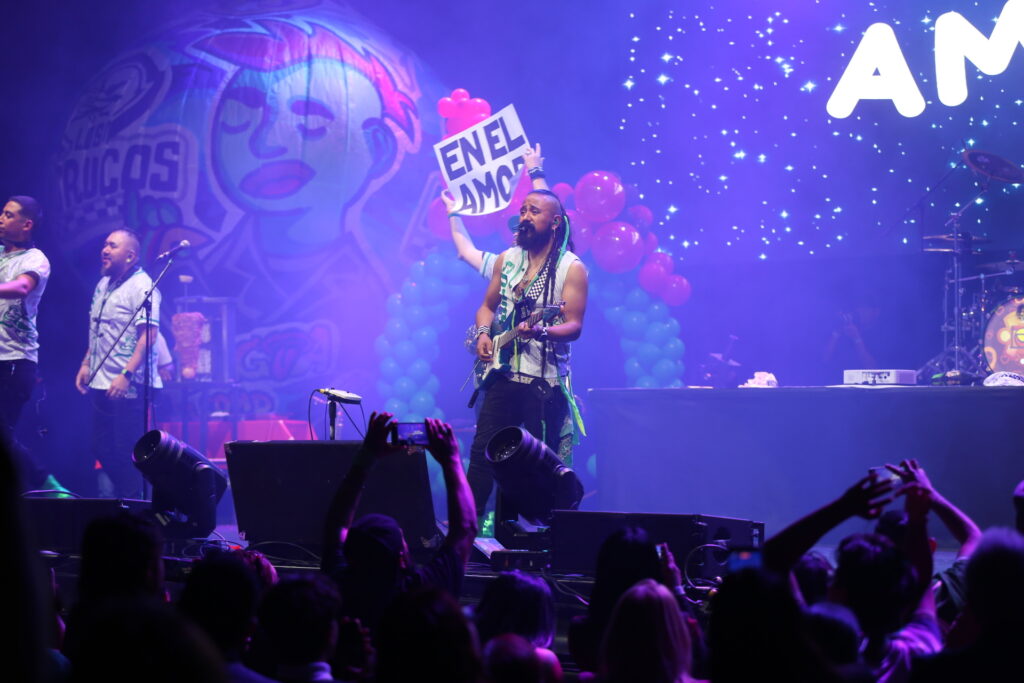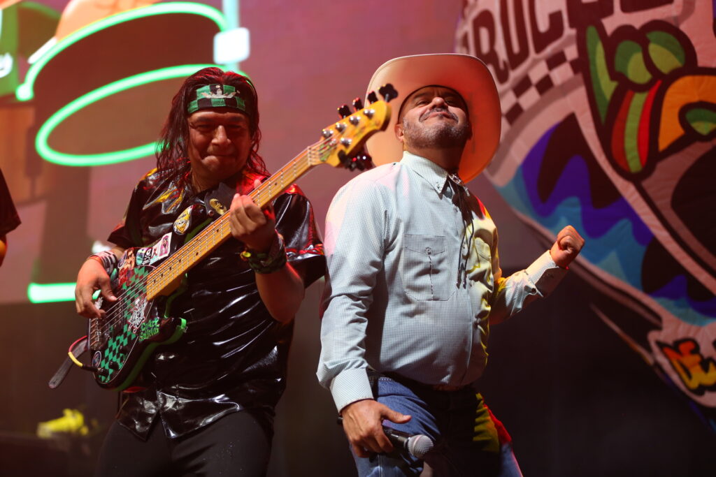 La fiesta comenzó a lo grande. En el centro del escenario, un trompo real de pastor giraba como parte de la escenografía, mientras un taquero repartía tacos a los sorprendidos asistentes de las primeras filas. Así, fieles a su estilo irreverente y profundamente mexicano, Los Korucos no solo ofrecieron un concierto: ofrecieron una celebración popular, un ritual de barrio llevado al corazón de uno de los teatros más emblemáticos de la capital.