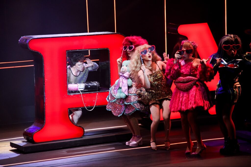 La atmósfera del montaje es un viaje sensorial: la escenografía brilla con luces motorizadas y miles de destellos de neón que evocan los ritmos y colores de una década irrepetible. La estética audiovisual transporta al espectador a un imaginario ochentero, cargado de nostalgia y sofisticación, que convierte cada función en una experiencia teatral única.