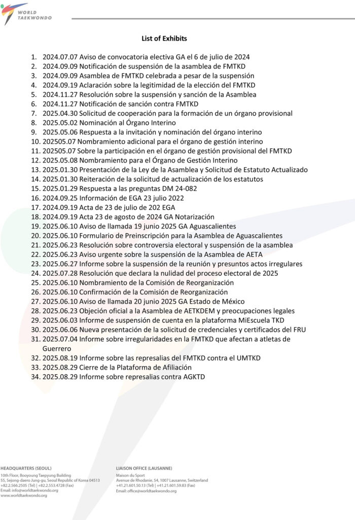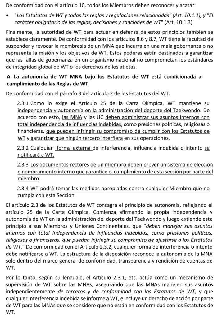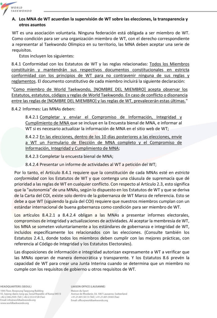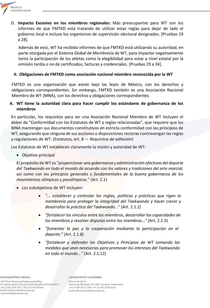 Aquí anexamos el documento que la WT envío al Sr. Raymundo González Pinedo, al que le ha hecho un caso omiso al negarse colaborar con el órgano de gestión provisional, designado por la World Taekwondo.
