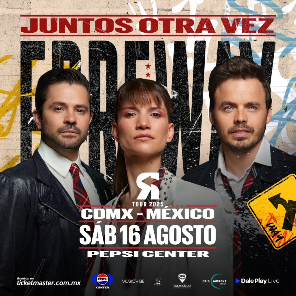 La Ciudad de México se prepara para vivir uno de los momentos más esperados por toda una generación: el regreso triunfal de Erreway, la emblemática banda argentina que conquistó miles de corazones a principios de los 2000, se presentará el próximo sábado 16 de agosto en el Pepsi Center WTC como parte de su emocionante gira "Juntos Otra Vez", dentro del Erreway World Tour 2025. La noticia ha causado una verdadera conmoción entre sus seguidores, quienes por más de dos décadas soñaron con ver nuevamente en el escenario a Camila Bordonaba, Felipe Colombo y Benjamín Rojas, reunidos como en los tiempos gloriosos de Rebelde Way. Boletos a la venta en el Sistema Ticketmaster y en taquillas del inmueble.