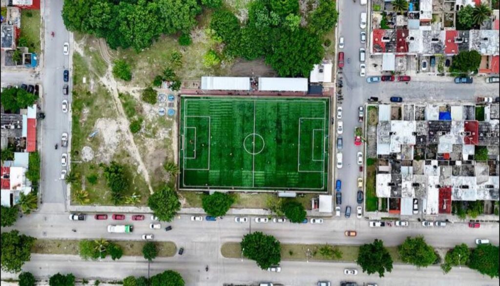 La cancha de la Sm 217 se suma a la ya rehabilitada en la Sm 103. Próximamente también serán entregadas con nuevo pasto sintético las ubicadas en las supermanzanas 221, 21, 236, 238, 248, 258 y 99.