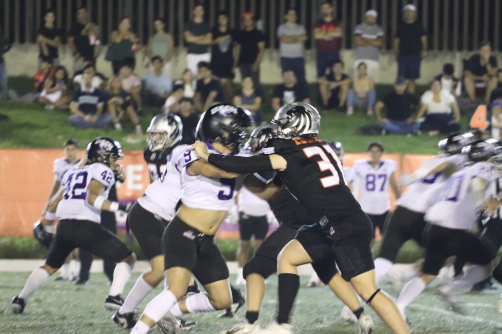 El Coliseo Maya explotó nuevamente cuando Lorenzo Calvo (#8) lanzó un pase quirúrgico de 45 yardas a la espalda del córner rival. Karlos Jiménez (#88), en una recepción de auténtico highlight, atrapó el ovoide arrinconado en las diagonales. Con el extra, los Felinos se adelantaron 17–7, encendiendo la esperanza del campeonato.
